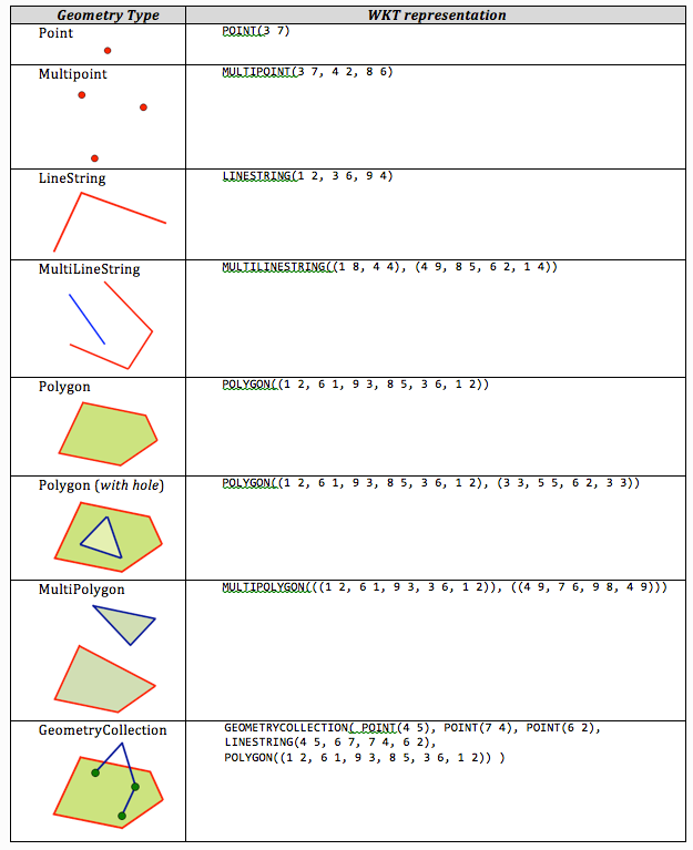 지리정보를 표시하기 위하여 일반적으로 아래와 같은 9개의 type을 사용한다.